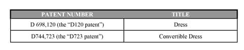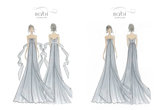 The foregoing trademarks and logos, whether or not they appear with the symbols ® or ™, are trademarks and/or service marks of Jenny Yoo. Trademarks or trade dress include the above names and logos, and other graphics, logos, images, page headers, button icons, scripts, and service names for Jenny Yoo’s products, services, and programs. You may not use any of the "Jenny Yoo" trademarks or trade dress without our prior written permission. Moreover, Jenny Yoo's trademarks, service marks and trade dress may not be used in connection with any product or service (i) that is not authorized by Jenny Yoo in writing; (ii) in any manner that is likely to cause confusion among customers that the source of such product or service is, or is in any way associated with, Jenny Yoo; or (iii) in any manner that disparages or discredits Jenny Yoo.  All other trademarks not owned by Jenny Yoo that appear on the Website are the property of their respective owners who may or may not be affiliated with, connected to or sponsored by Jenny Yoo. You may not use any of the "Jenny Yoo" trademarks or trade dress without our prior written permission. By using the Website you are acknowledging that the trademarks, service marks, trade dress and Content on the Website or otherwise belonging to Jenny Yoo are and shall remain, except where owned by a third party, the sole and exclusive property of Jenny Yoo. Nothing on the Website shall be construed as conferring any license or right, whether by implication, estoppel or otherwise, to use any of Jenny Yoo's trademarks, service marks, trade dress or other web-site content. Jenny Yoo is also the owner of the following design patents, pending utility patent applications, and pending trademark applications.